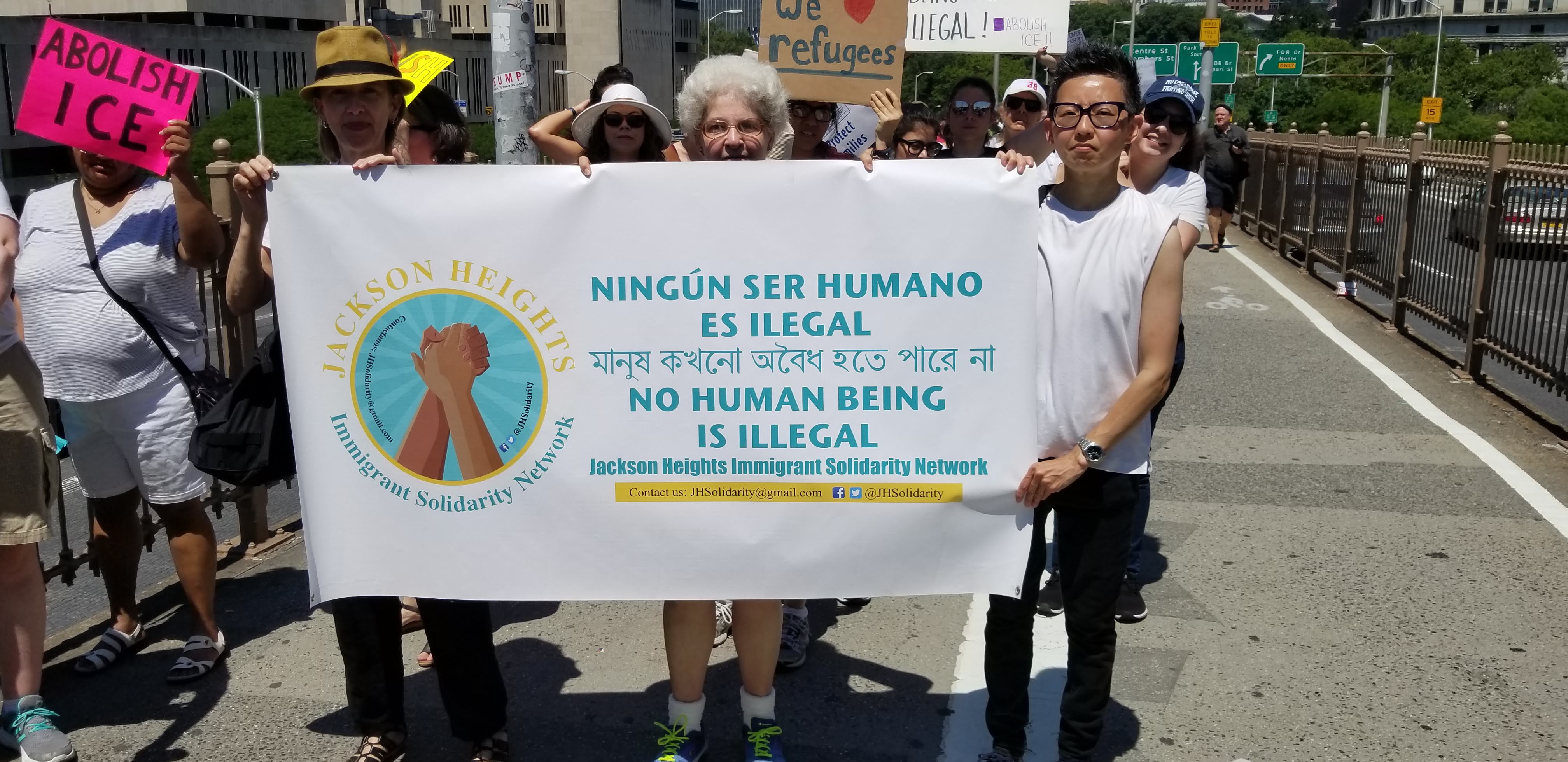 En marzo de 2017, había un foro de derechos de los inmigrantes en P.S. 69 en Jackson Heights. Inspirado por los oradores y motivado para responder a la pregunta «¿Qué posición deberíamos tomar ahora?» nos dimos cuenta de que nuestro vecindario, tan diverso como es, necesitaba un grupo que pudiera movilizar a las personas para resistir el ataque contra los inmigrantes. Nuestro objetivo era unirnos a las organizaciones de derechos de los inmigrantes y los grupos de defensa dirigidos por inmigrantes que existían, y educar, presentar peticiones y hacer frente a la intimidación y el acoso de nuestro gobierno a aquellos que buscan una vida mejor en los Estados Unidos.